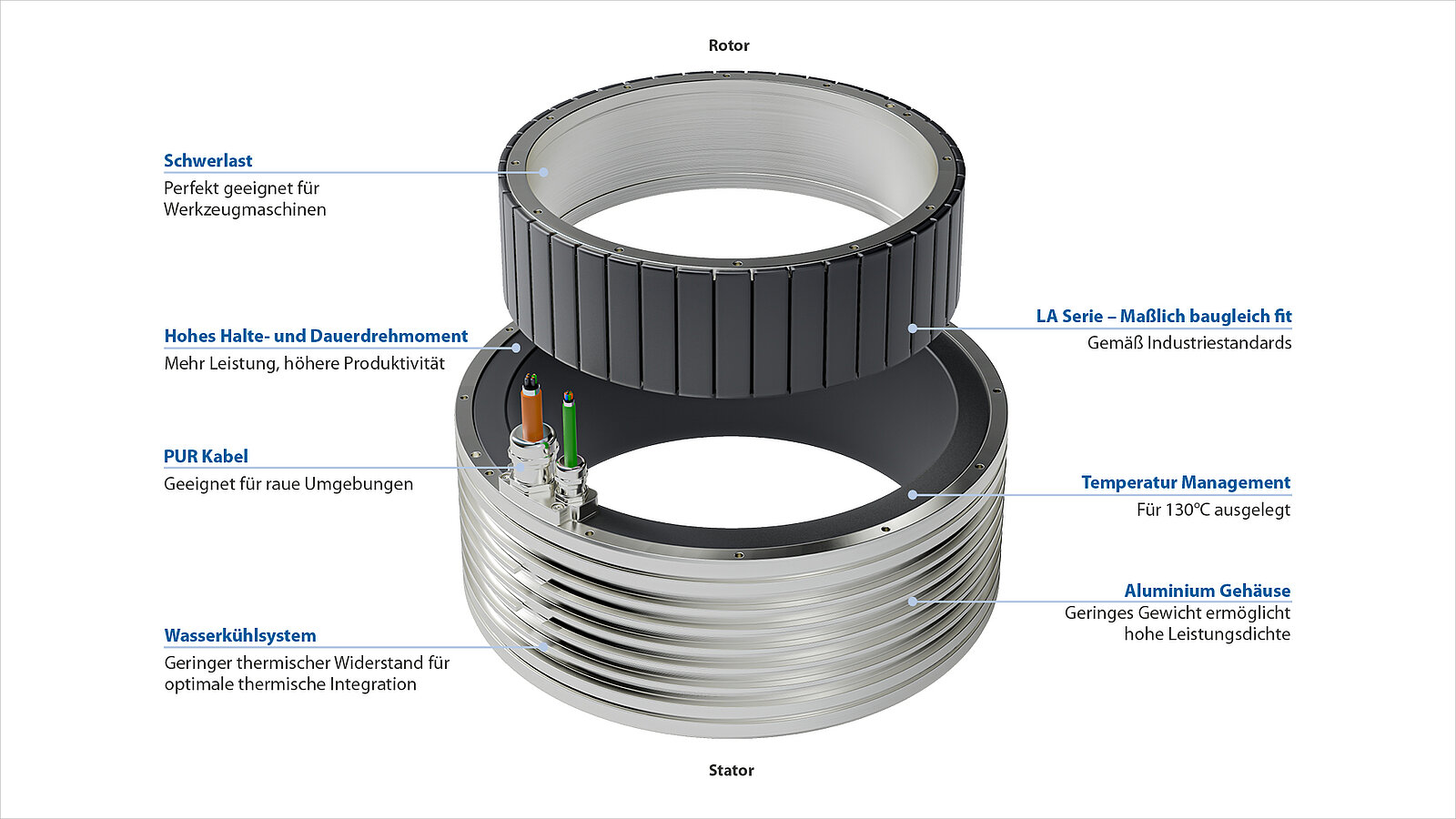 - höhere Drehmomentdichte führt zu einer echten Leistungssteigerung der Maschine